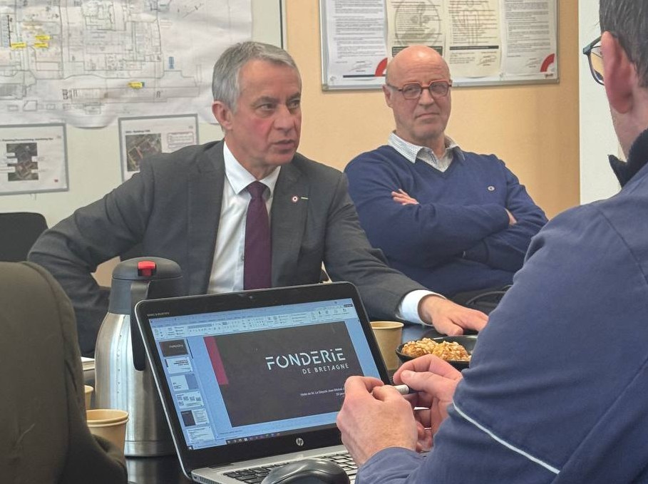 Suite à l’incendie du 20 janvier, j’ai tenu à me rendre à la Fonderie de Bretagne pour échanger avec les représentants syndicaux et la direction, afin de faire le point sur les perspectives de reprise et les projets de diversification en cours.