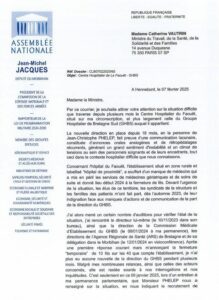 J’ai interpellé la ministre de la Santé Madame Catherine Vautrin sur la gestion alarmante du GROUPE HOSPITALIER BRETAGNE SUD et demandé des garanties pour l’avenir de nos établissements.