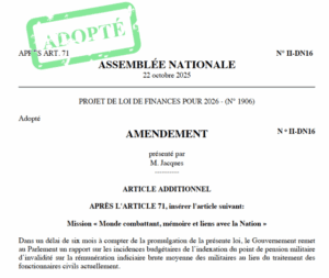 C’est tout l’objet de mon amendement, adopté le 29/10 en commission de la défense.