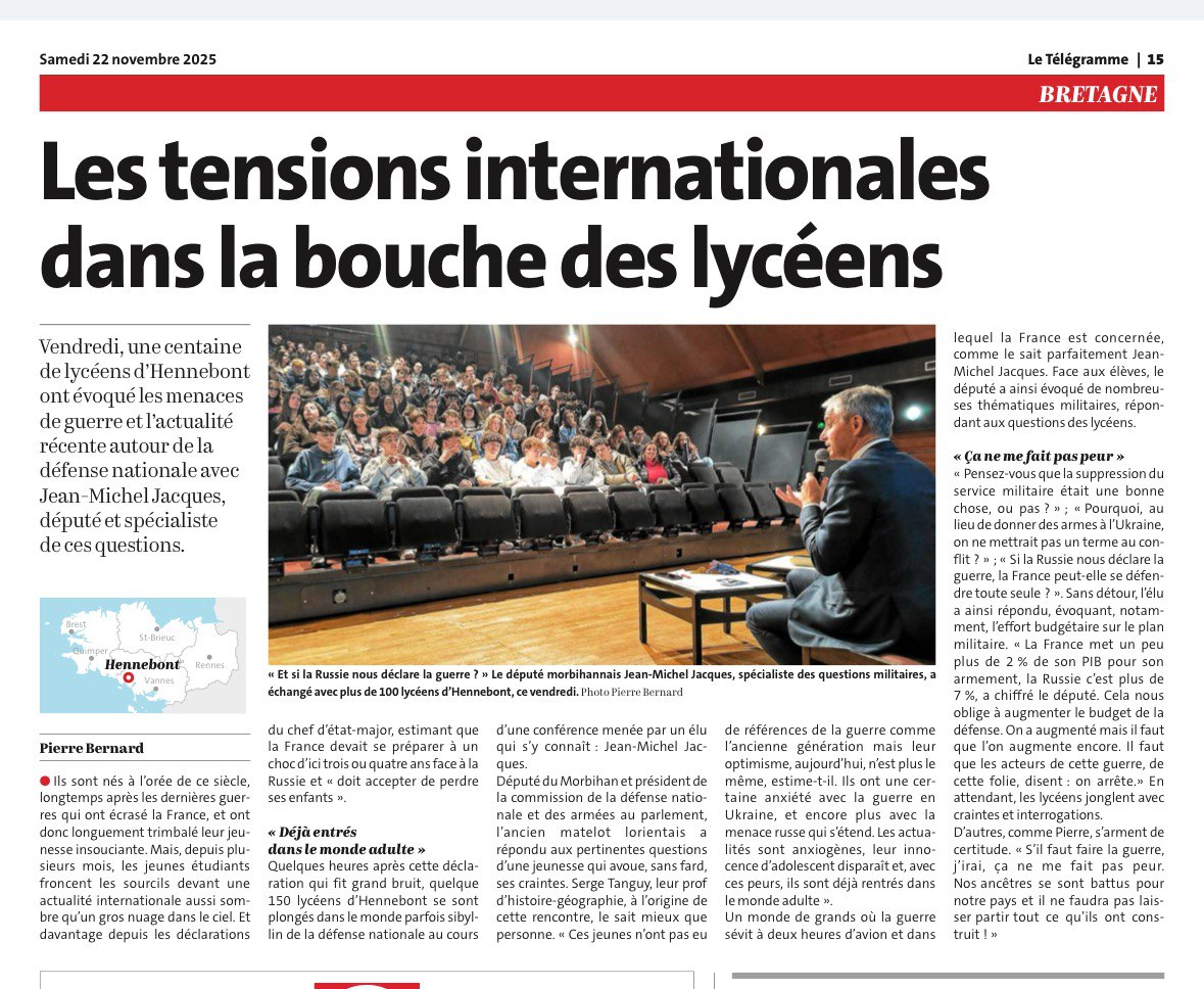 Article du Télégramme : https://www.letelegramme.fr/bretagne/sil-faut-faire-la-guerre-quand-des-lyceens-dhennebont-evoquent-les-tensions-internationales-6933262.php